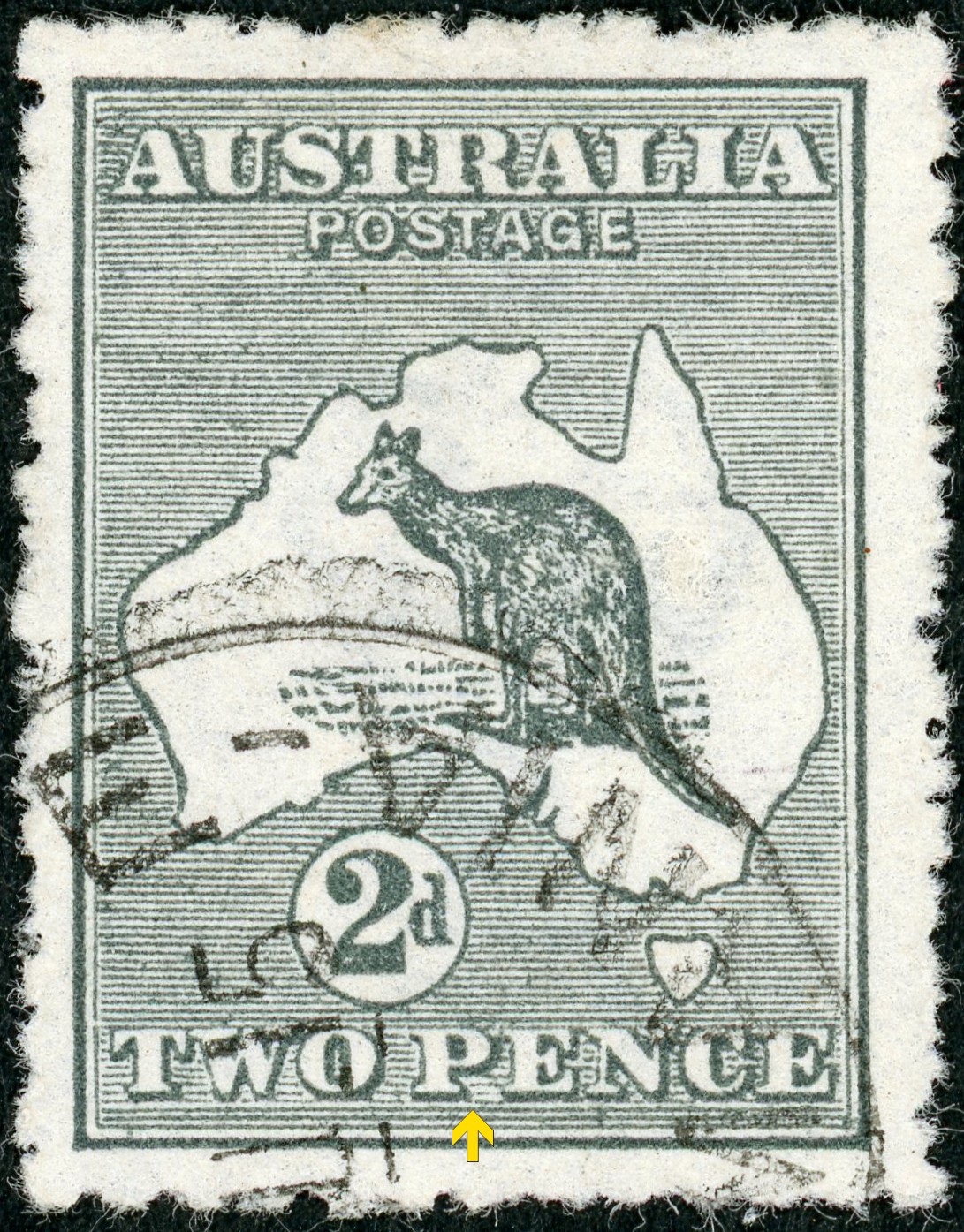 First Watermark This Die IIA stamp comes from Plate 1, Right pane, Position 49 (1R49). The "P" of "PENCE" looks like a "B".