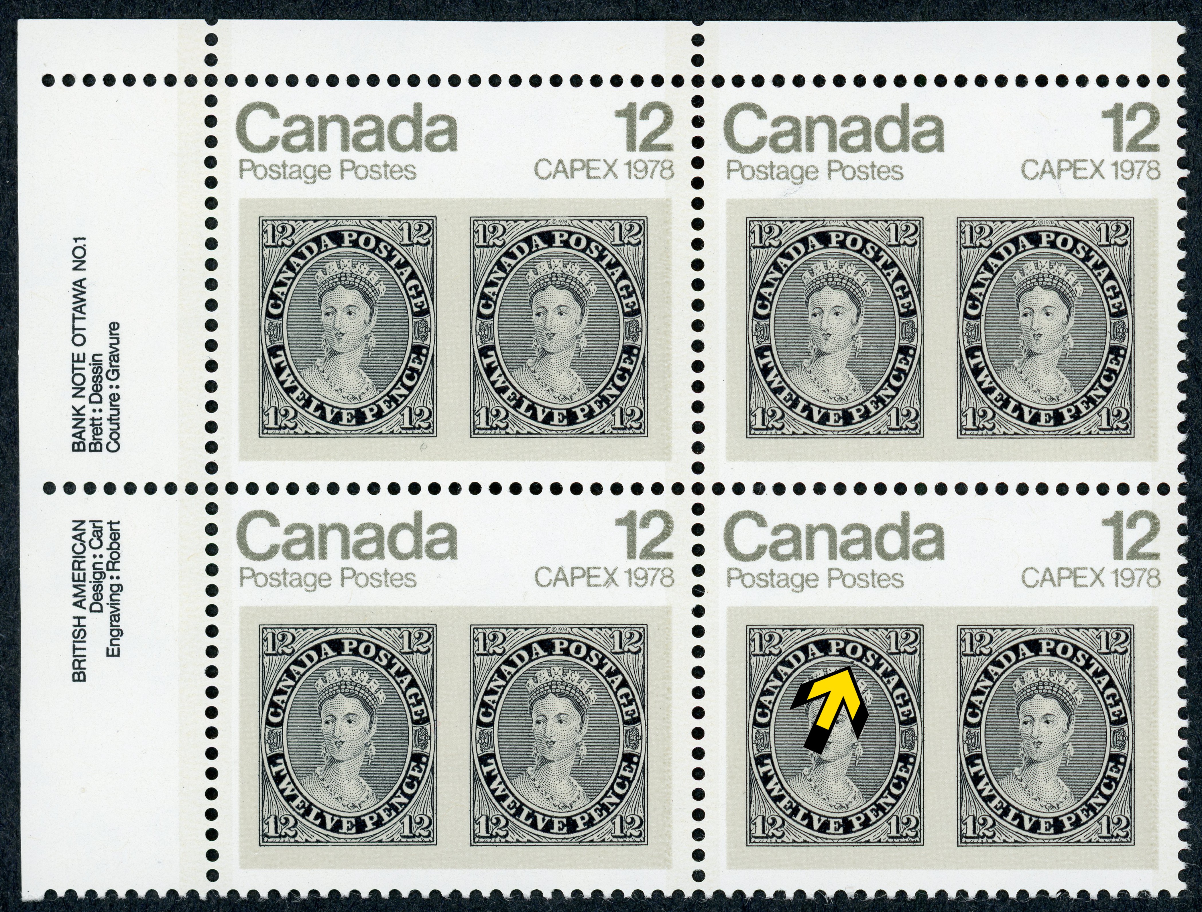 This specimen is the lower right stamp on an Upper Left