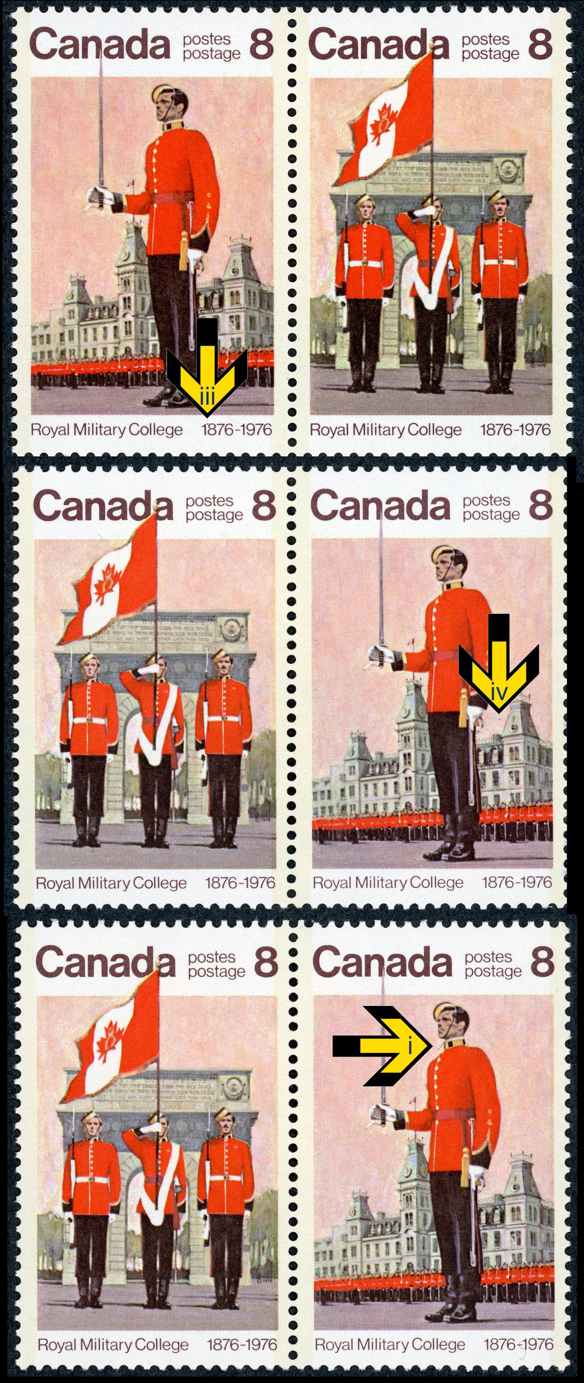 Canada - Unitrade (Scott) 693 Three varieties, se-tenant with 692 Issued 1 June 1976 693i Position 44 - "Chinstrap" variety variety 683iii Position 37 - "1'876" variety 693iv Position 46 - "UFO" to left of building.