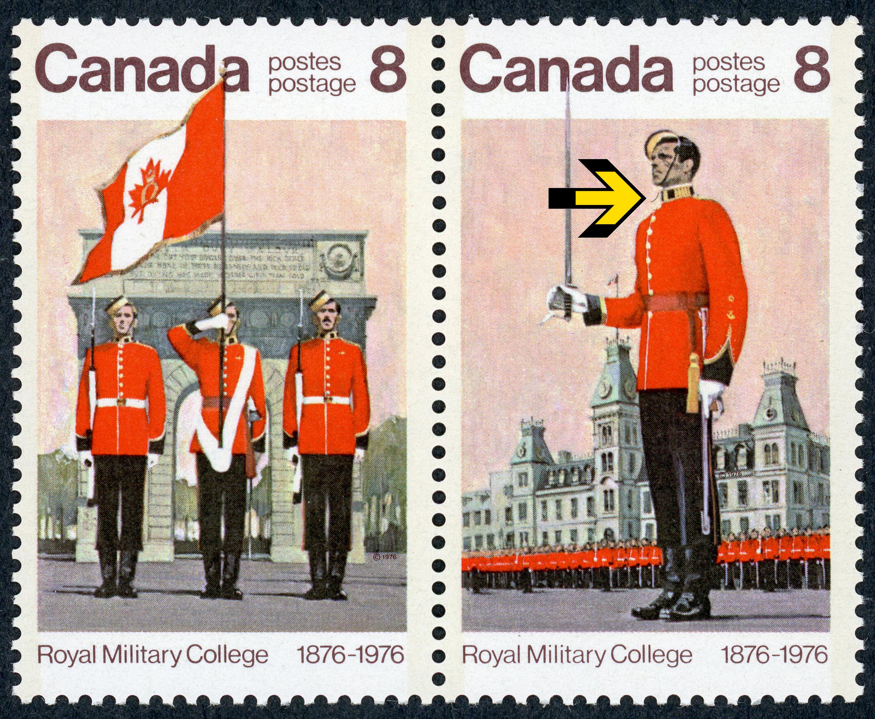 Canada - Unitrade (Scott) 693i Se-tenant with 692 Issued 1 June 1976 693i Position 44 - "Chinstrap" variety