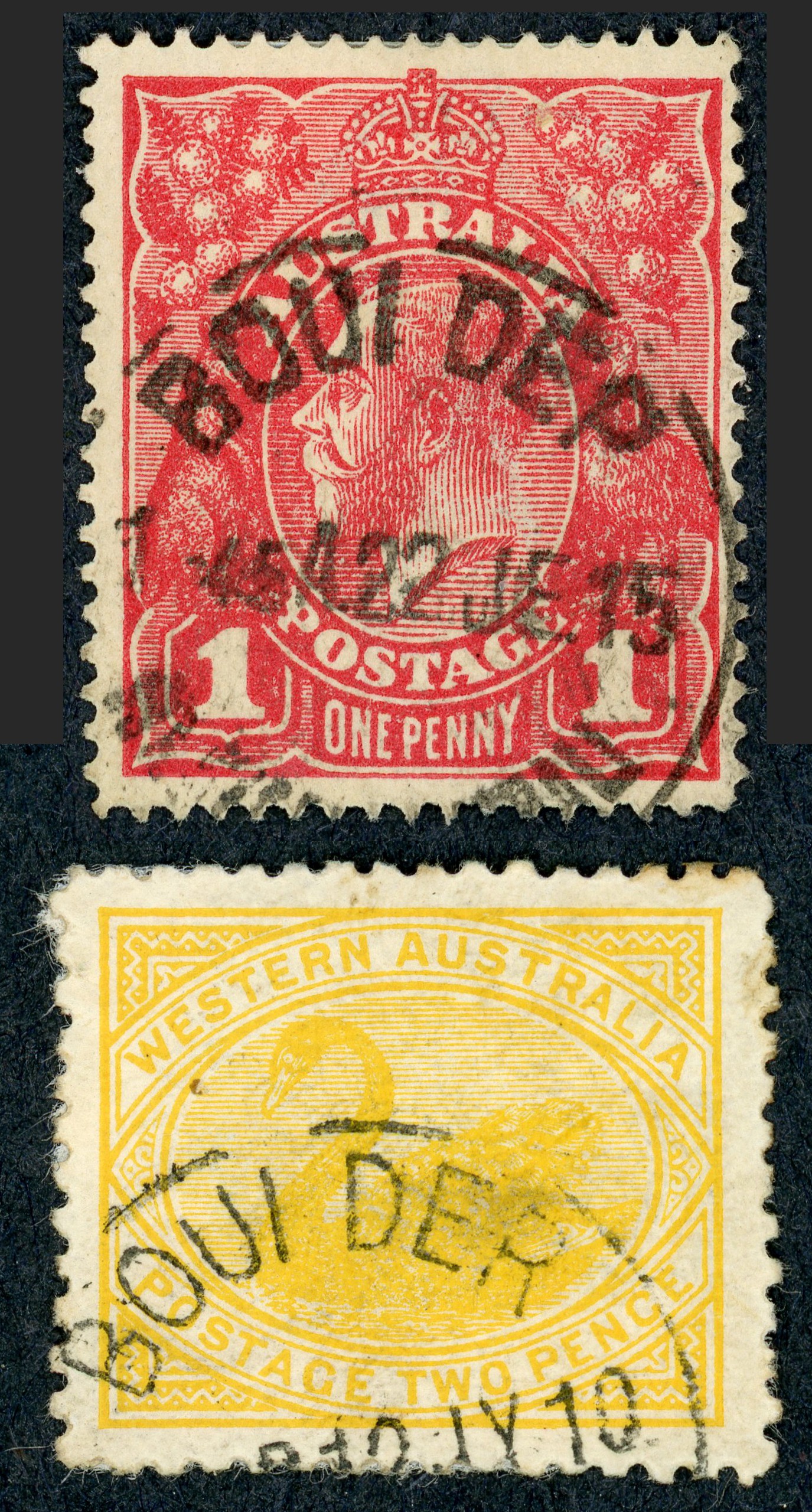 The second stamp is Western Australia SG 140, curent catalogue value £2.